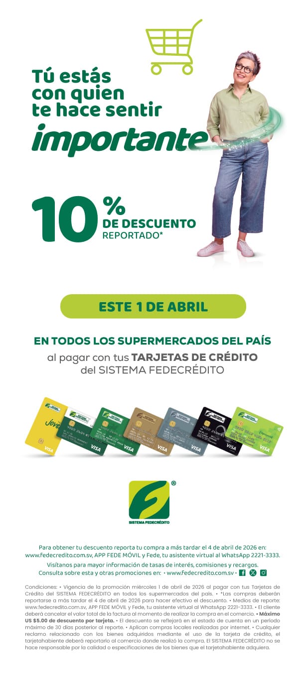 Somos una entidad 100% Salvadoreña, miembro del SISTEMA FEDECREDITO que proporciona productos y servicios financieros de calidad.